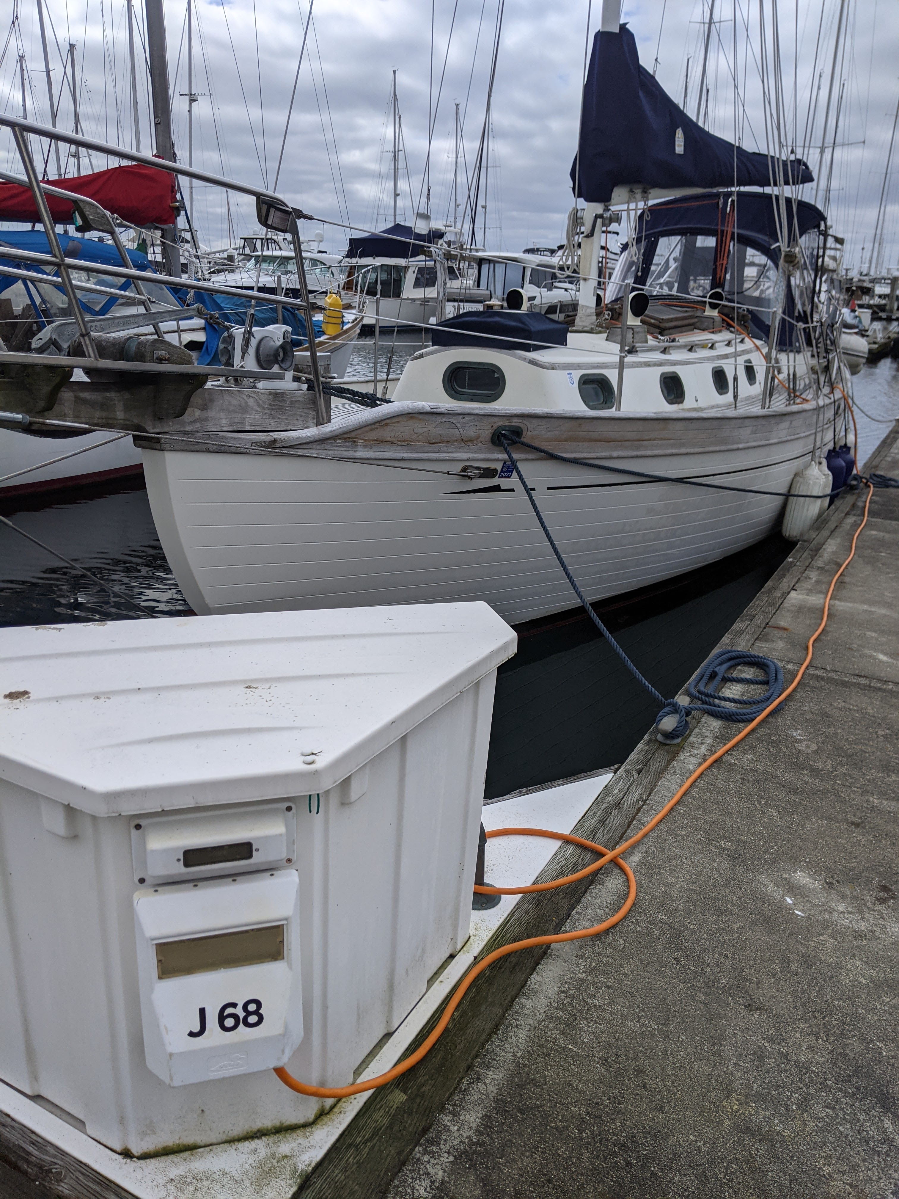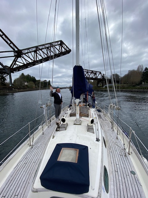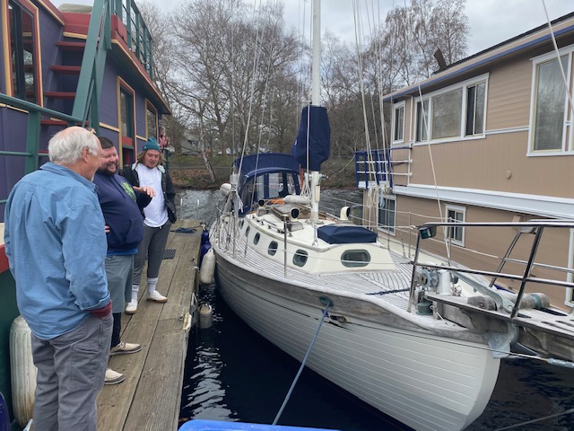With the old engine half pulled out we needed help to get the boat off the dock and up to Port Townsend. We had great weather and an uneventful trip to the dock. While we were hoping to have the mast pulled with the boat in the water, the weather had other plans.